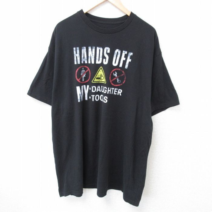 > XL/古着 半袖 Tシャツ メンズ HANDS OFF 大きいサイズ ロング丈 クルーネック 黒 ブラック 24jun28 中古