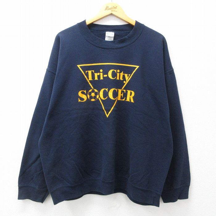 - XL/古着 長袖 スウェット メンズ 00s サッカー 大きいサイズ クルーネック 紺 ネイビー 24aug28 中古 スエット トレーナー