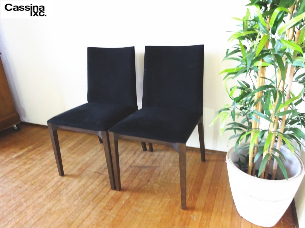 - osk070917 【美品】Cassinaixc./カッシーナイクスシー (LINE/ライン) (張地:スエード調/ブラック) アームレス ダイニングチェア 2脚セット
