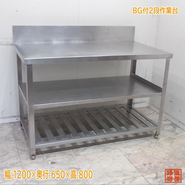 - ステンレス BG付2段作業台 1200×650×800 業務用 中古厨房/25J0215Z