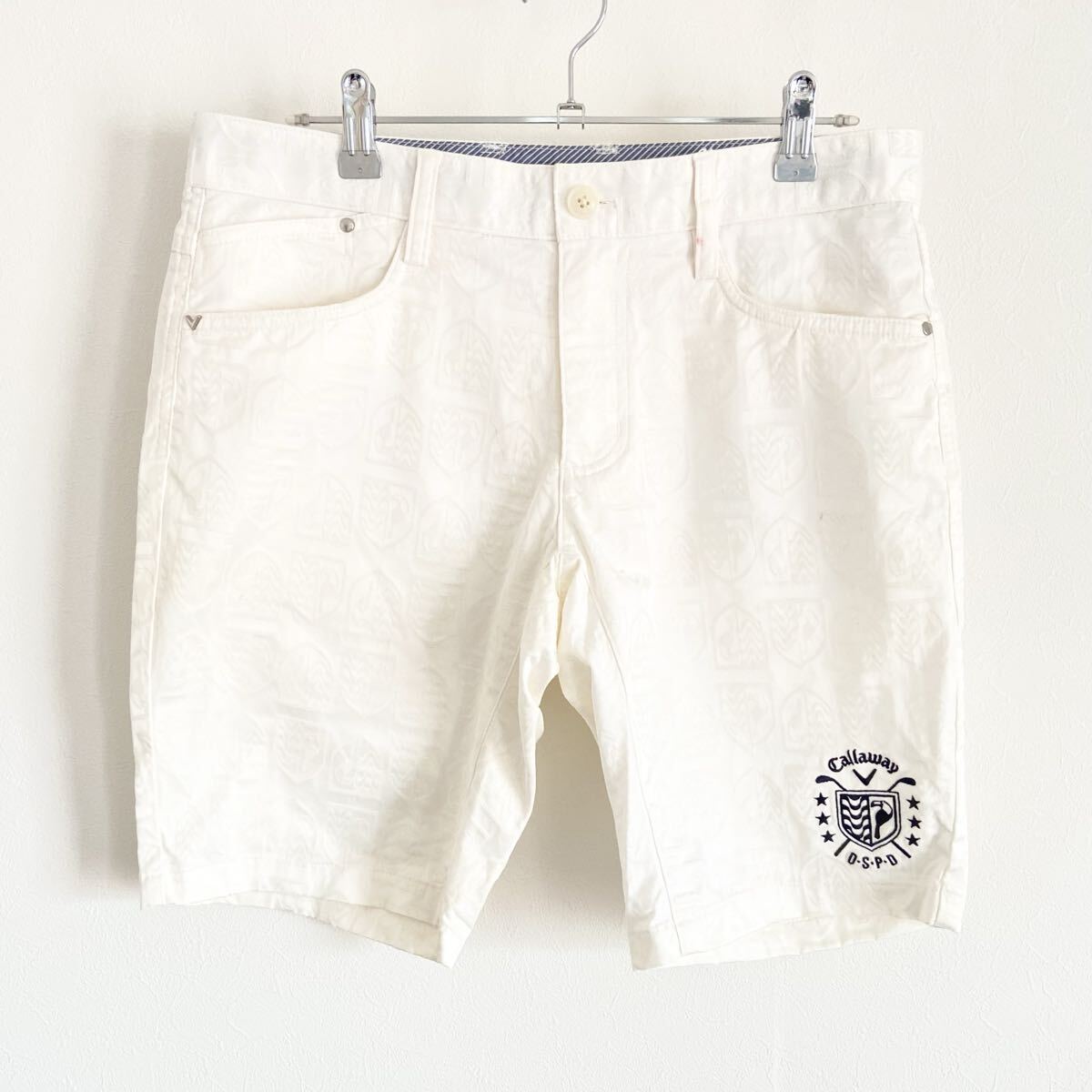 - 【キャロウェイ】総柄ショートパンツ/ゴルフウェア/刺繍ロゴ/コットン素材【M/ホワイト】衝撃プライス!アスリート待望★1点限定販売!A49