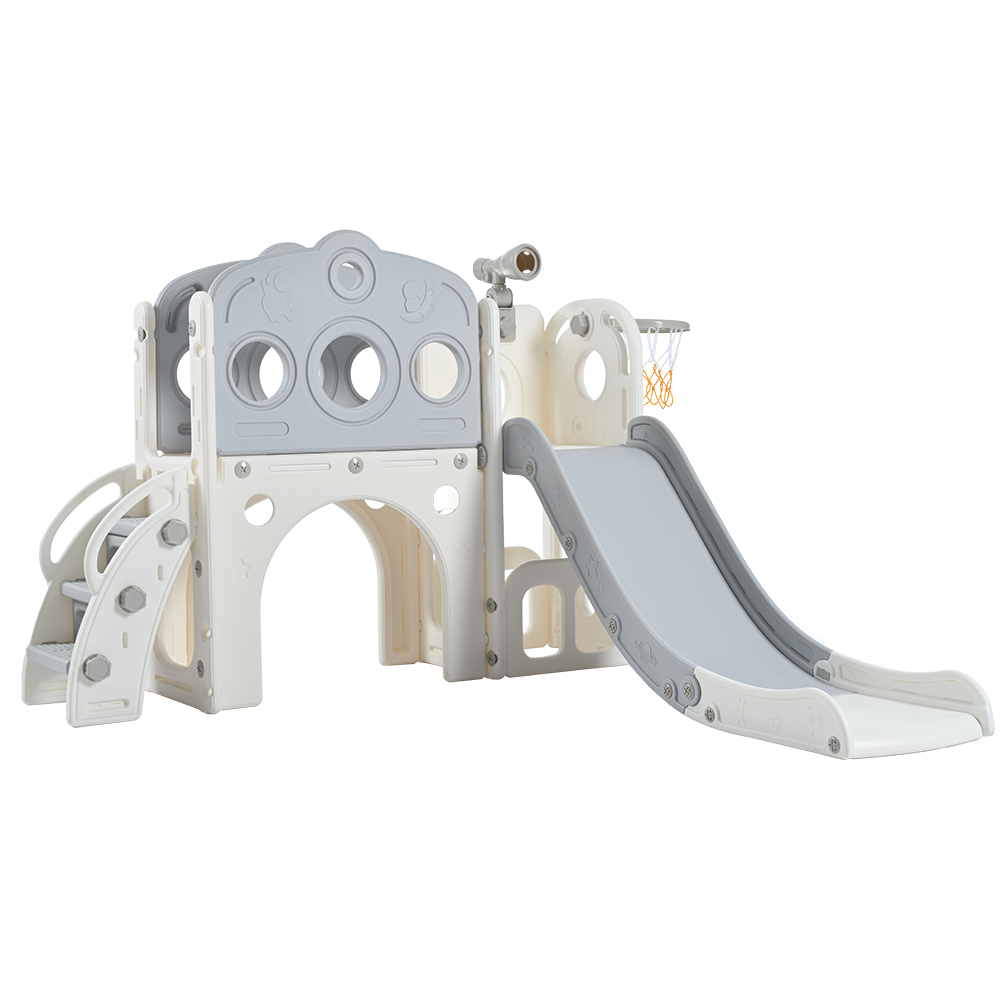 - 滑り台 バスすべり台 バスケットゴール ボール遊び 室内 遊具 室内遊具 大型遊具 すべりだい 屋内 家庭用 子供 【ホワイト+グレー】