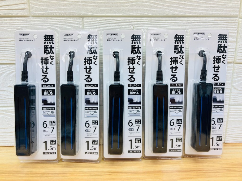 - A665 YAZAWA 5点セット 火災防止 安全シャッター付 無駄なく挿せる フリータップ 6〜7個口 1.5m BLACK 火災防止 延長コード H6NS7015BK