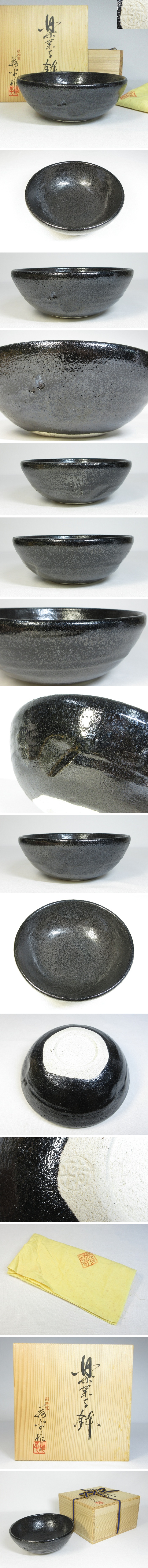 - 【B0398b】茶道具 京焼 醍醐窯 島荷平 黒楽 菓子鉢 菓子器 共箱 共布 即決 送料込み