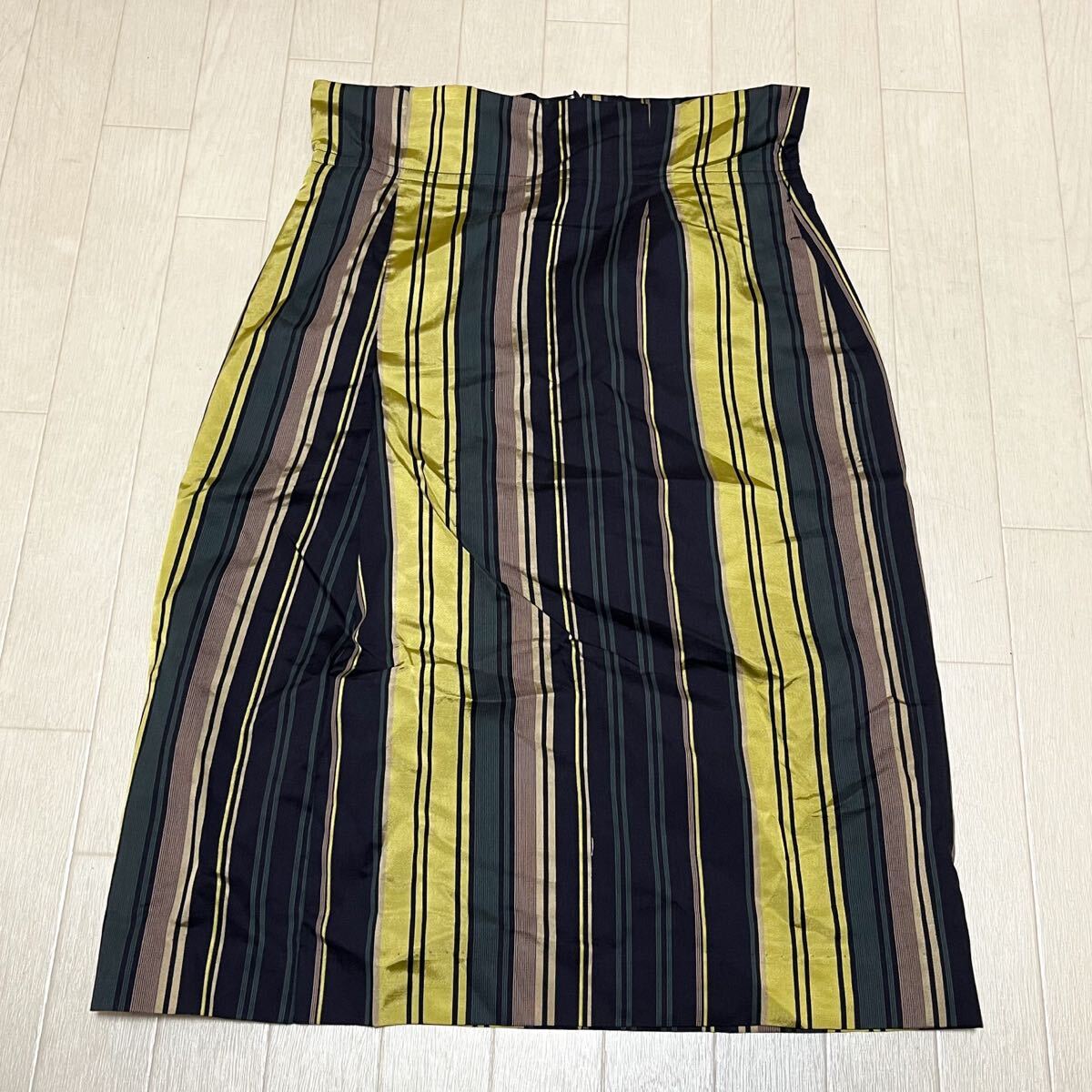 - 和844★ DES PRES デプレ タイトスカート マキシ ロング ストライプ シルク混 36 ネイビー カーキ レディース