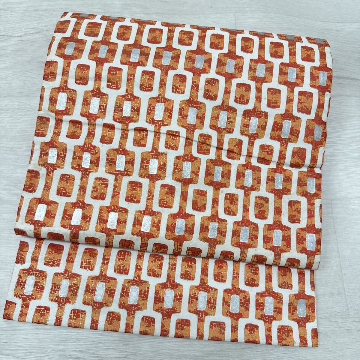 - 名古屋帯 幾何学模様 鮮やかな染め 九寸 正絹 W-4257