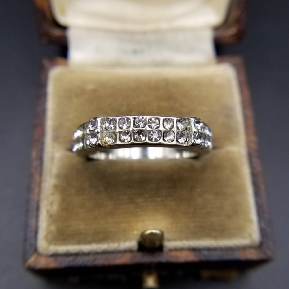 - クリアラインストーン 2段 ハーフエタニティ ヴィンテージ リング シルバートーン 指輪 上品 エレガント ファッションジュエリー Y24-N