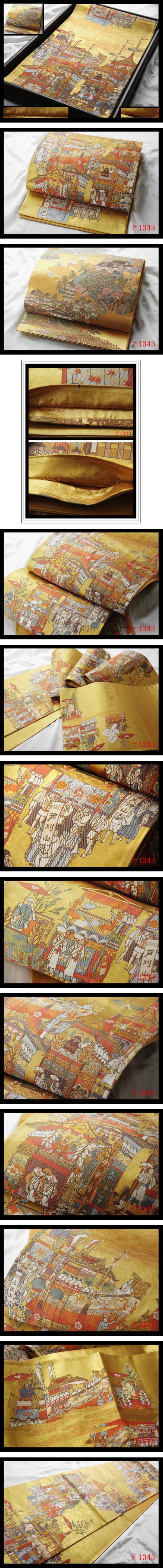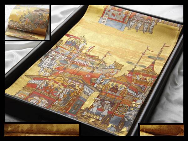 - 蔵【テ1343】西陣逸品 本金引箔 両面 祇園祭 近江八景 気品豊かに 正絹純金糸高級美術袋帯 ◇検◇簪着物名古屋帯和装小物帯締め