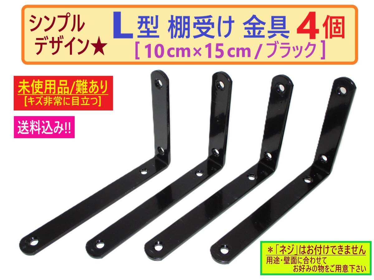> 難あり 未使用 L字型 棚受け 金具 黒 4個 A キズ非常に目立つ ブラック 15cm×10cm シンプル 鉄 ネジなし ブラケット 収納 飾り 棚 DIY