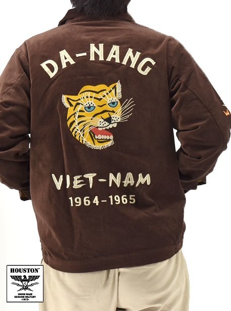 - コットン別珍ベトナムジャケット「TIGER」◆HOUSTON ブラウン XLサイズ 51507 ヒューストン 虎 トラ タイガー 和柄 ベトジャン 刺繍