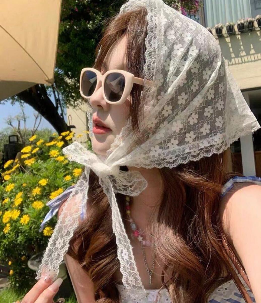 - フリル フラワー レース 透け感 涼しげ ホワイト バブーシュカ