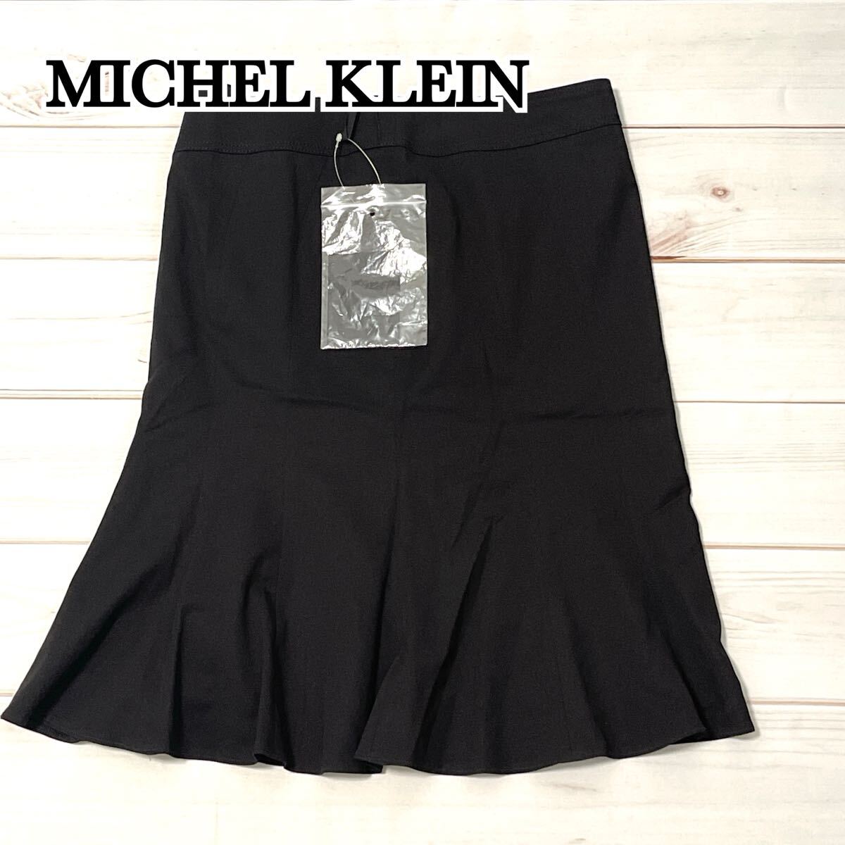 > 美品 MICHEL KLEIN ミッシェルクラン スカート 膝丈 ひざ丈 ボトムス レディース フレアスカート 大きめ 通勤 補修布あり ブラック 黒 38 M