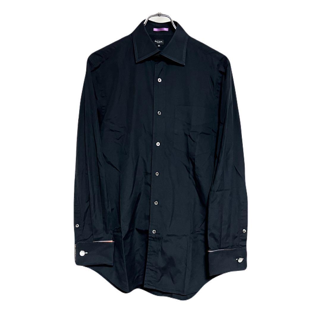 > 即決★良品 Paul Smith LONDON★M コットンドレスシャツ ポールスミス ロンドン 黒 ブラック ストライプ ダブルカフス
