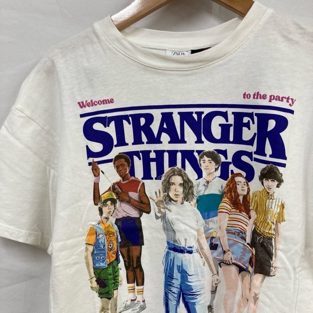 > A569 ザラ 134cm ユーロ古着 Stranger Things コットン 半袖 プリントTシャツ ホワイト ZARA キッズ