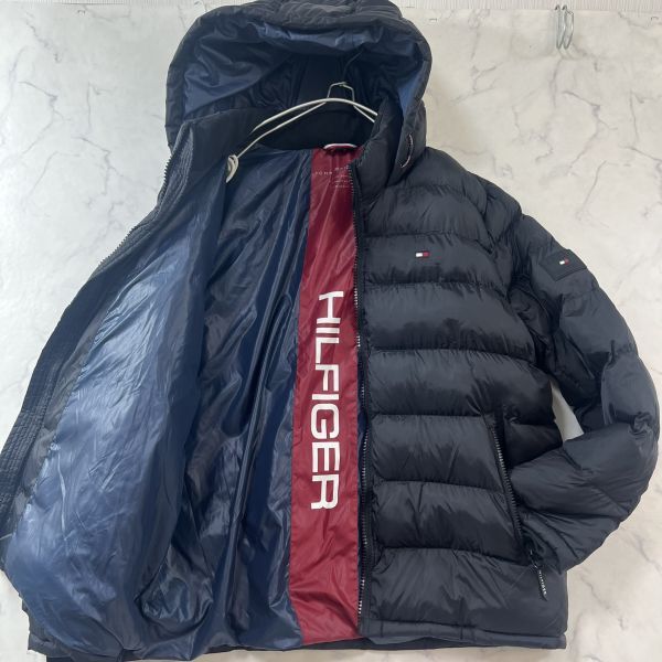 - 【3L】 ほぼ新品 トミーヒルフィガー ダウンコート ダウンジャケット フード 中綿 ラバー袖ロゴ メンズ 黒 ブラック TOMMY HILFIGER B1479