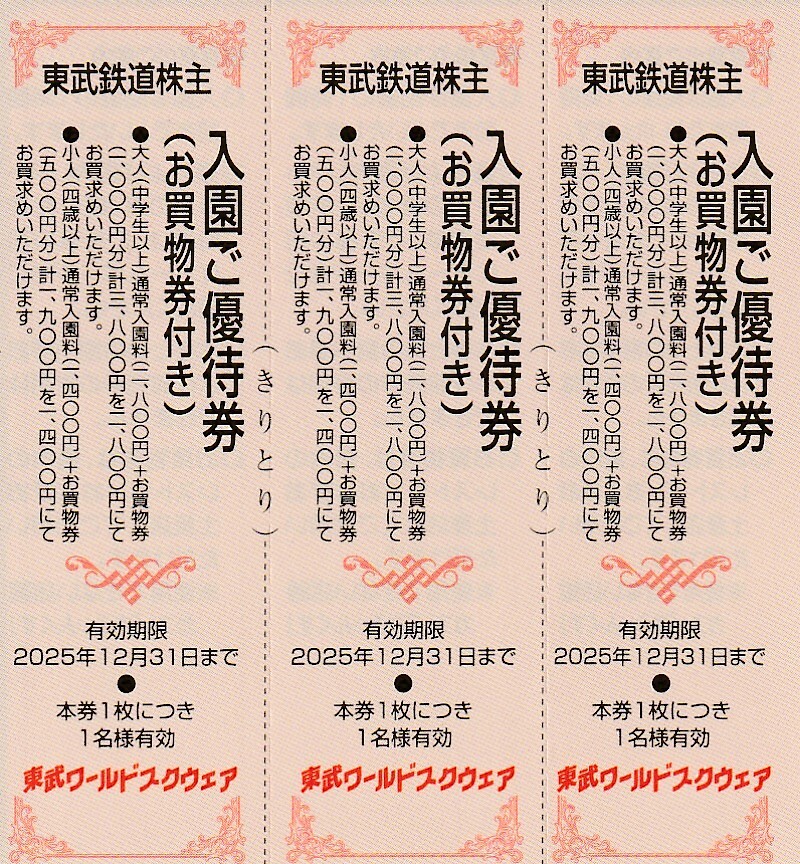 - 東武鉄道★株主優待券★東武ワールドスクウェア★ご優待割引券★3枚セット★即決