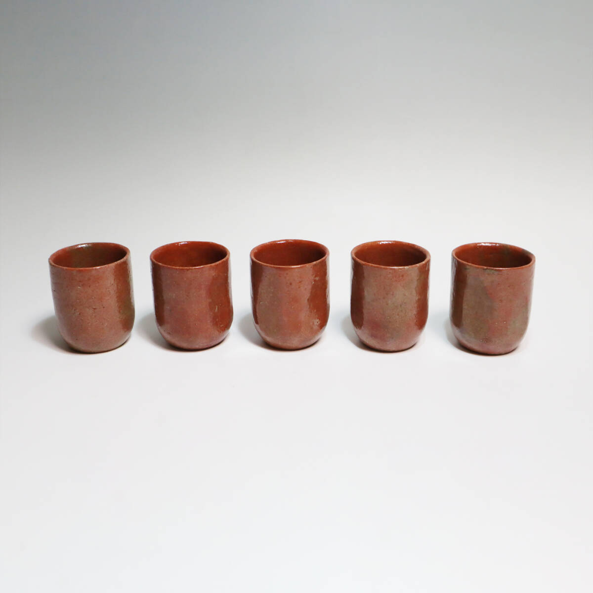 - 楽6代左入 赤楽 筒向付 5客 箱有 うつわ/食器 UT058