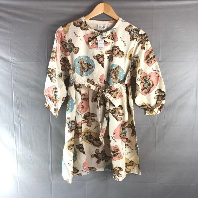 > ELB ワンピース パジャマ ナイトウェア 長袖 くま ハート リボン 綿100% タグ付き ピンク 茶 クリーム色系 140サイズ 2025083000257