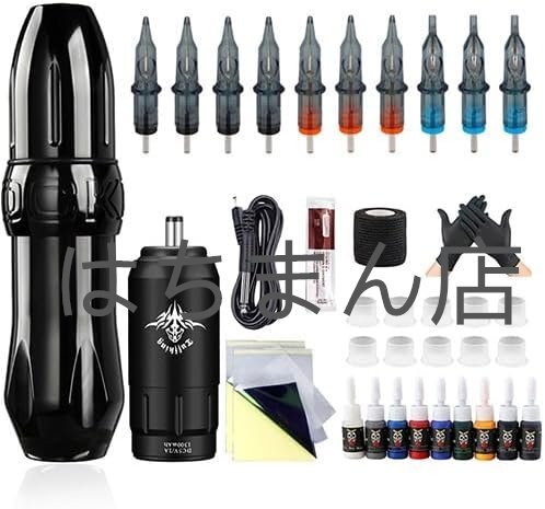 - プロのタトゥーマシン ワイヤレスタトゥーマシンセットカートリッジニードル10本 10色のタトゥー顔料 タトゥー用品のフルセット付き
