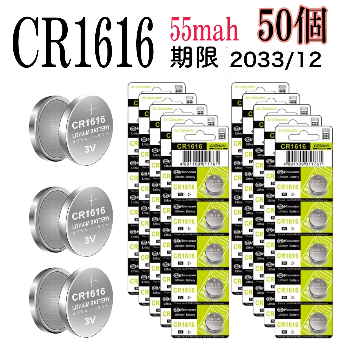 - ボタン電池 CR1616 【50個セット】【3V 55mah 容量偽装なし】消費期限2033/12リチウムコイン電池 DL1616 ER1616 GPCR1616