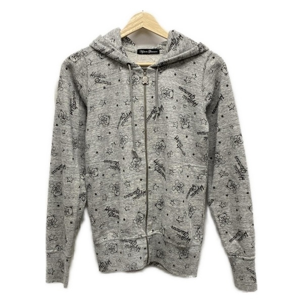 > ヒステリックグラマー HYSTERIC GLAMOUR パーカー サイズF - ライトグレー×黒 レディース 長袖/ジップアップ/ラメ/ファックベアー