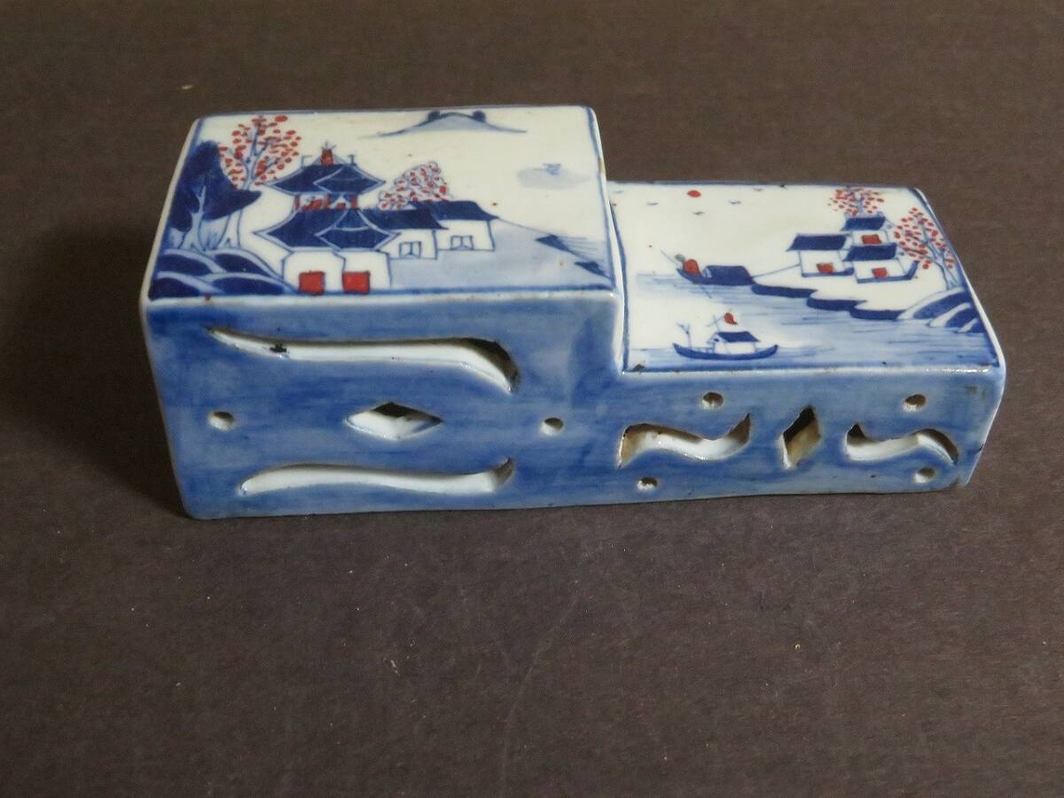 - (E-26)釉裏紅楼閣山水墨台 清朝期