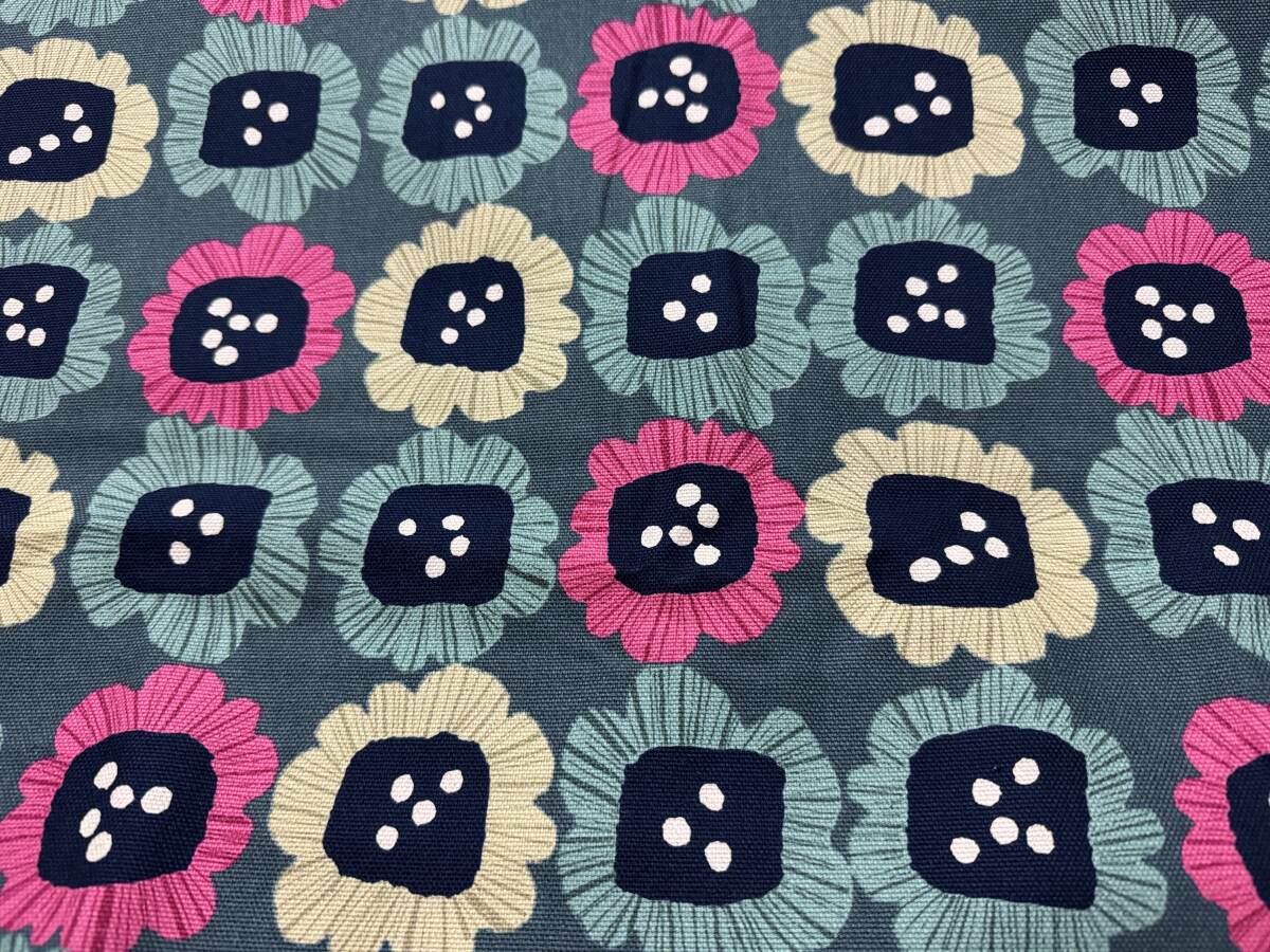 > 3m 10番オックス 大きなフラワー 114×300cm スモークグリーン 綿100% / 生地 はぎれ 北欧風