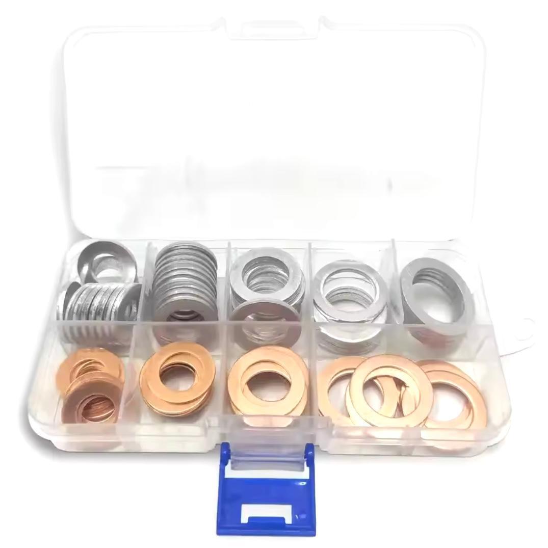 > 銅ワッシャー アルミワッシャー 80個セット 10サイズ M10-M18 ドレンパッキン シーリングワッシャー ケース付 バイク 車 管理E6