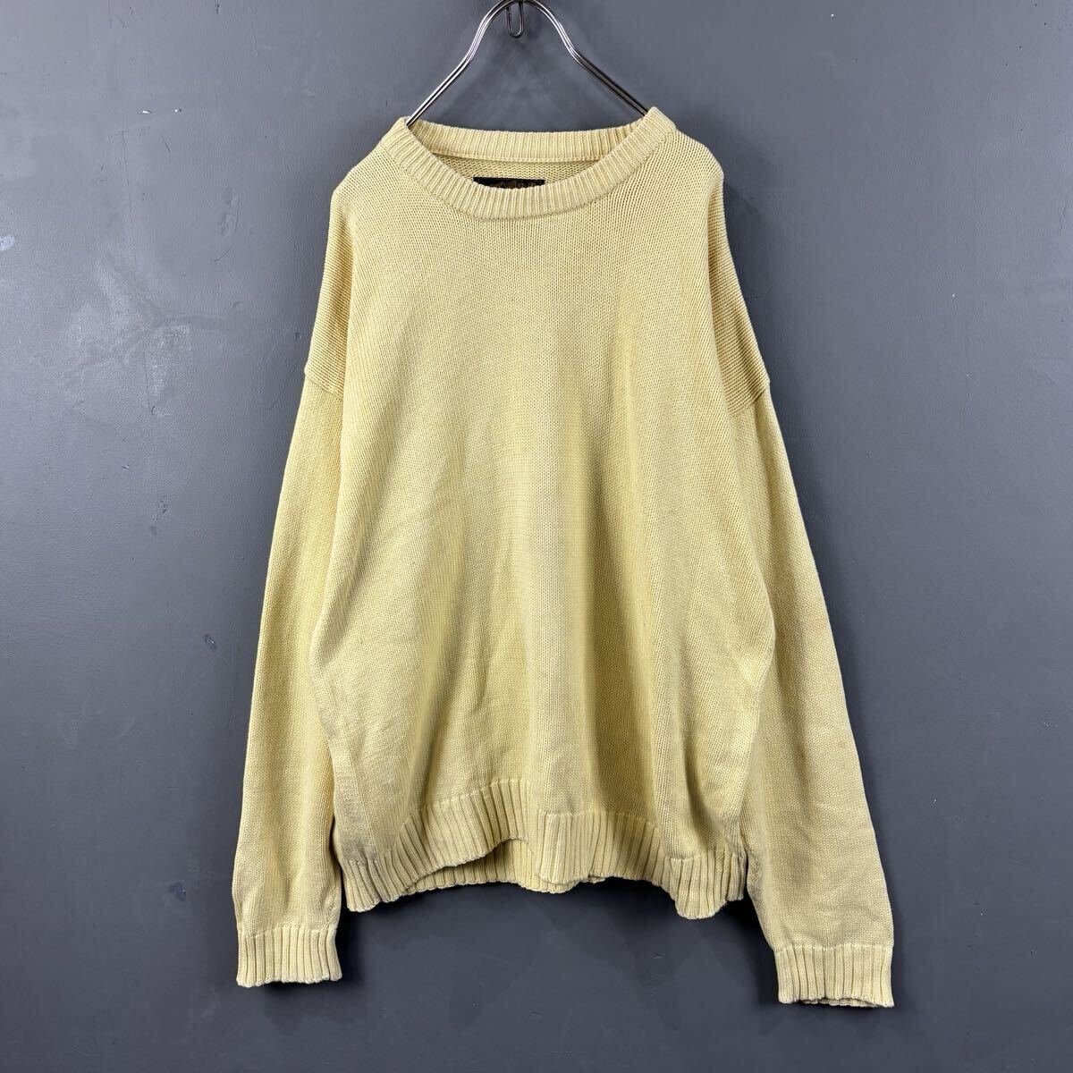> 80s 90s Vintage EDDIE BAUER エディーバウアー 黒タグ クルーネック セーター ニット コットン 無地 ヴィンテージ イエロー メンズ L
