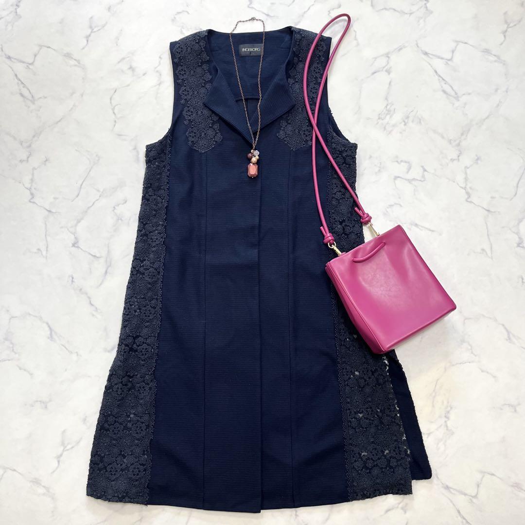 - 美品 インゲボルグ ロングジレ ベスト はおり サイドレース エンブロイダリー 11号 L