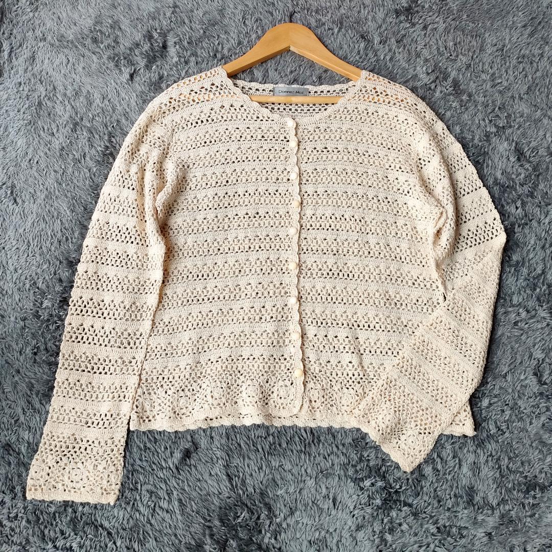 - ドネモア アンフレール コットン レース編み カーディガン アイボリー 綿 総レース フラワー かぎ編み 森ガール