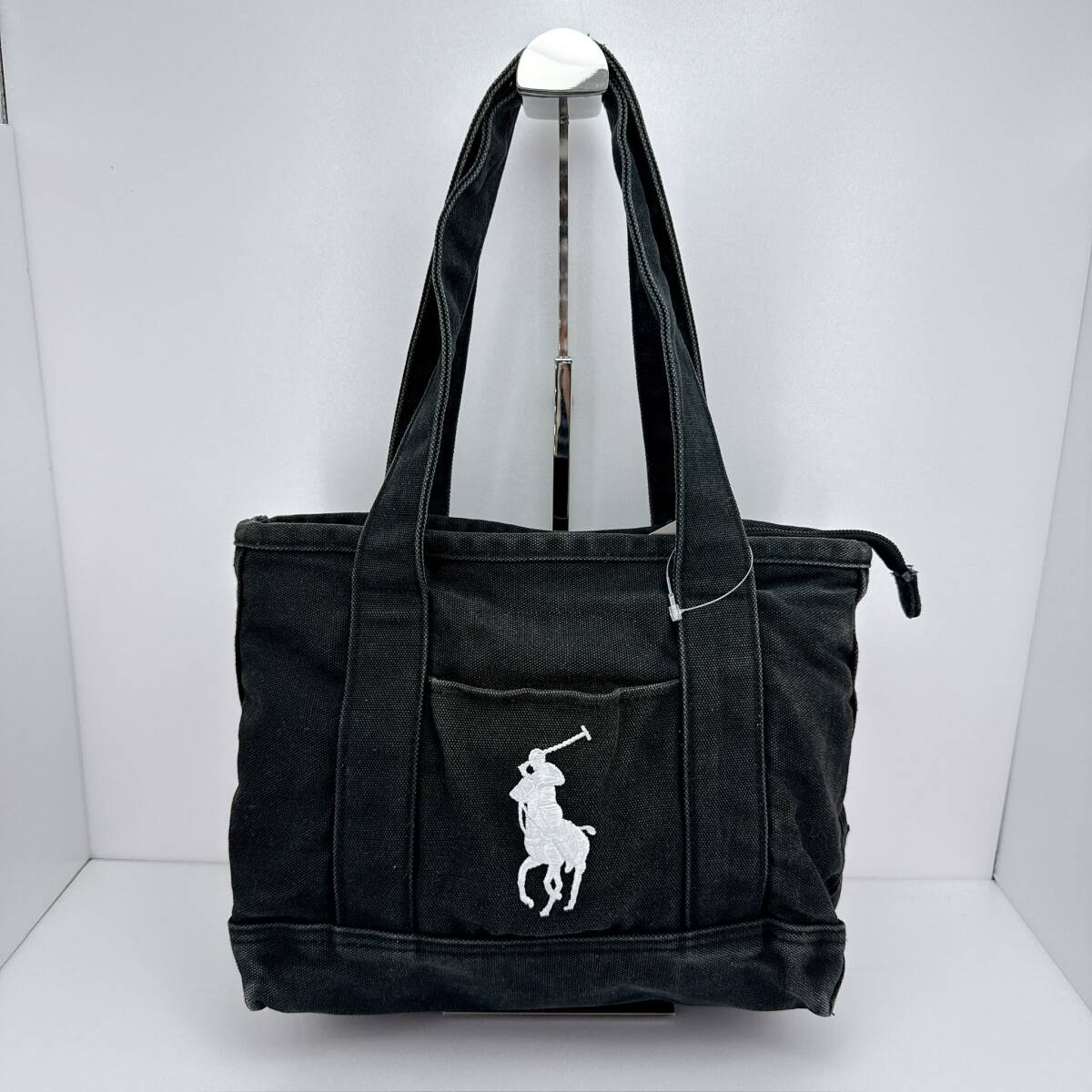 > 1532○ POLO RALPH LAUREN ポロラルフローレン トートバッグ ハンドバッグ キャンバス ブラック 黒 白 ホワイト ユニセックス