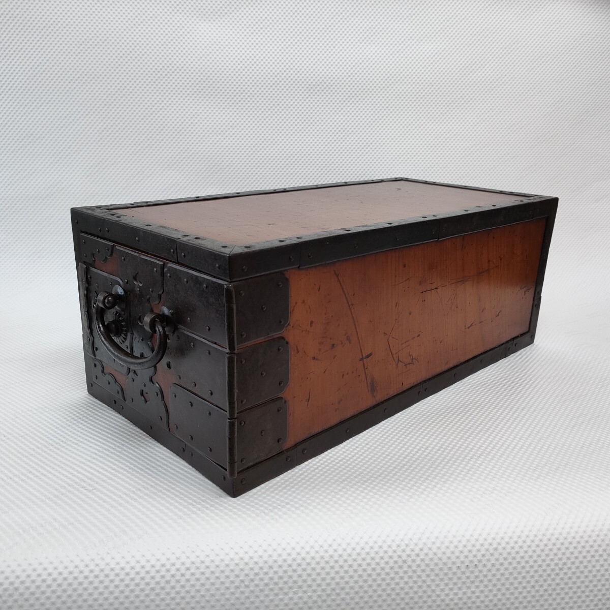 - 船箪笥 銭箱 古民具 時代物 書類箱 千両箱 鉄製金具 アンティーク 店舗什器 欅材 和箪笥