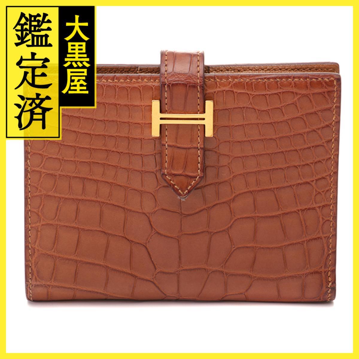 > HERMES エルメス 小物 二つ折り財布 ベアンコンパクト ゴールド・GP金具 アリゲーター U刻印・2022年頃製造 箱付き