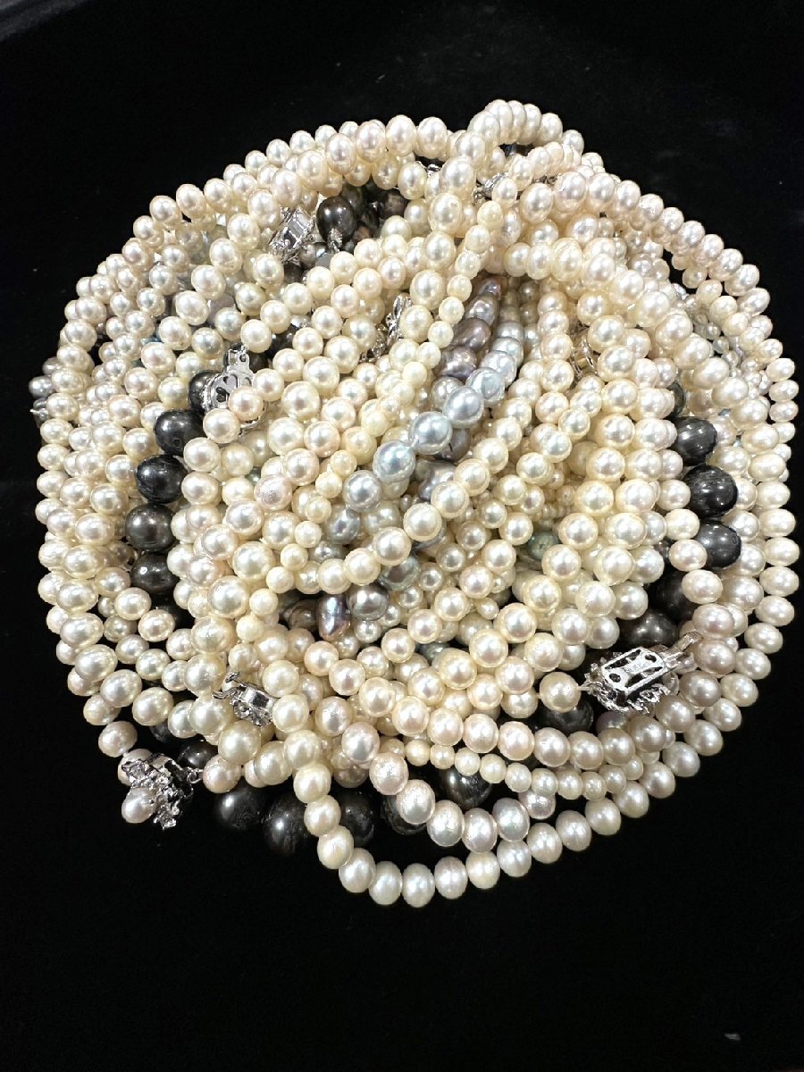 - 天然 パール ネックレス 27点 まとめて 総重量866g アコヤ シロチョウ クロチョウ バロック 淡水 ベビー ブルー SV金具 シルバー 刻印有