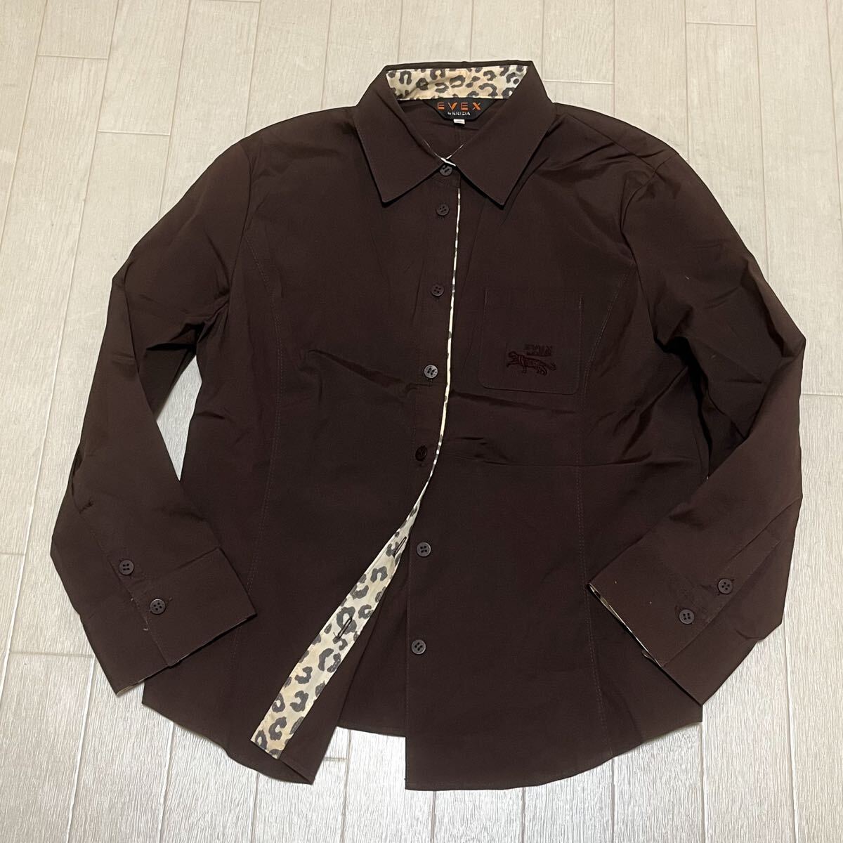 > 和844★ EVEX by KRIZIA エヴェックス クリツィア 長袖 ボタンシャツ レオパード ロゴ刺繍 胸ポケット 42 ブラウン レディース
