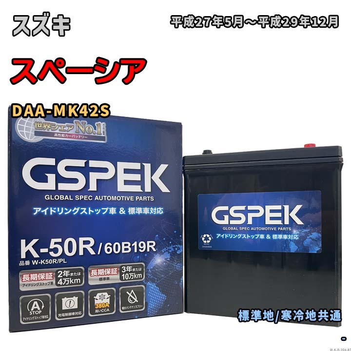 > バッテリー GSPEK W-K50R/PL スズキ スペーシア DAA-MK42S 平成27年5月~平成29年12月 対応 K-42R 互換 304