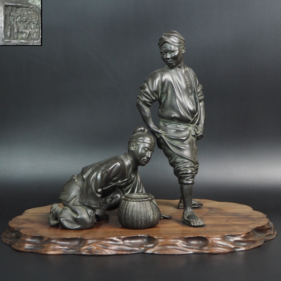- 【金富士】値下げ中 明治時代 晴光造 銅製人物置物 秀逸作 約49×34×36cm 検/古錫玉川堂高岡佐渡銅器龍文堂亀文堂清民国江戸明
