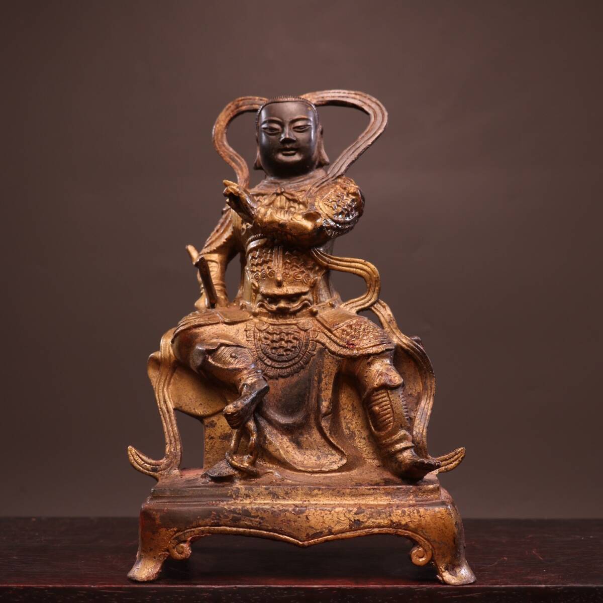 - ▽鴻▽ 銅製 泥金 玄武大帝像 仏像 宗教 仏教古美術 供養品 古賞物 古董品 時代物 稀少珍品 中国古玩 中国古美術