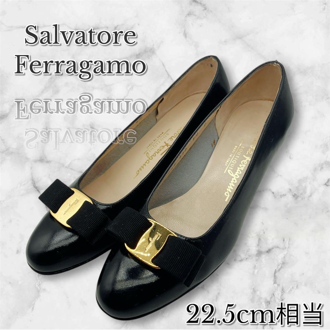 > FERRAGAMO フェラガモ パンプス ヒール 22.5cm 黒 ヴァラ 靴 4807 004821012