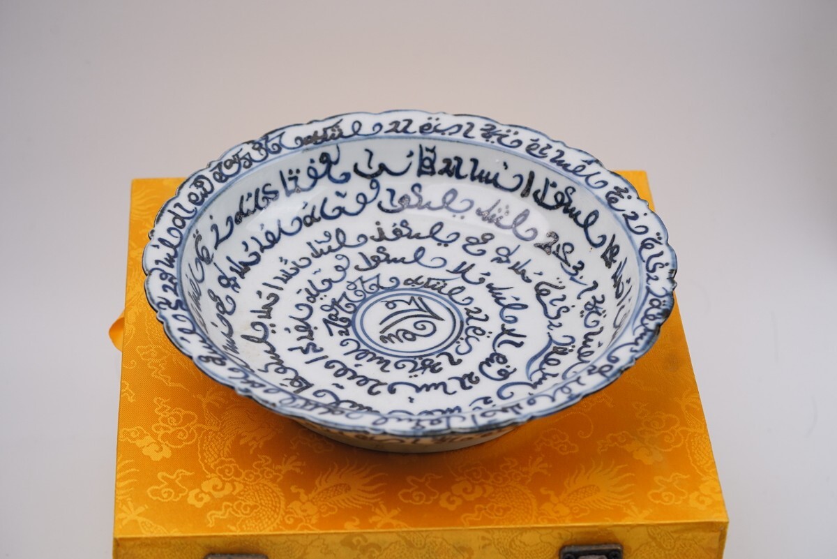- 中国古美術 元時代 青花 皿 陶磁器 骨董 古玩 時代物 中国美術 古美術 骨董品 唐物 当時物 箱付 口径22cm 高さ5cm