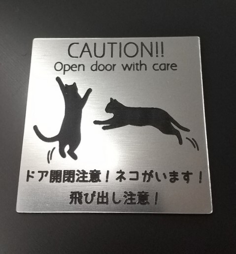 - アクリル製 ポストプレート 玄関 宅配 ドア プレート 5cm×5cm 猫がいます ネコ ねこ 飛び出し注意 シルバー ステンレス 送料無料