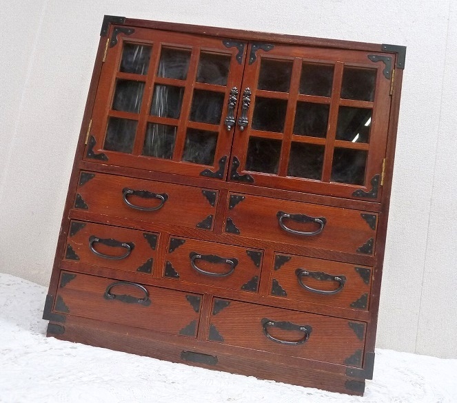 - (☆BM)ミニ茶箪笥 飾り棚/チェスト 小箪笥 高さ45.5㎝ 木製 アンティーク調 レトロ 和風 薬棚 茶器入れ