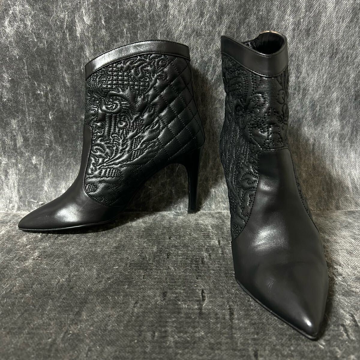 > GINZA Kanematsu 銀座かねまつ ブーティ レザー ショートブーツ キルティング 23cm ブラック *EW