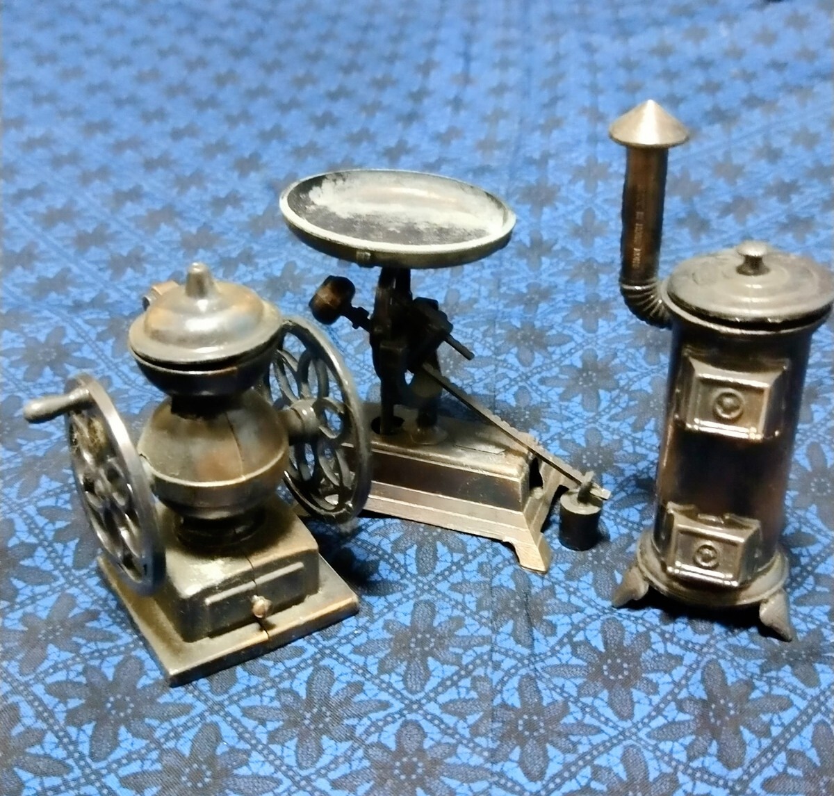 - 芸術品 当時物 鉛筆削り 薪ストーブ 天秤 その他 金属 オブジェ 置物 コレクション 3点セット アンティーク ヴィンテージ レア