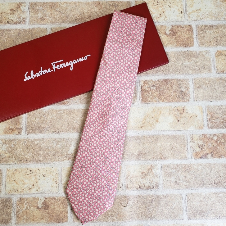 - 未使用 サルヴァトーレフェラガモ トランプ柄 シルク ネクタイ イタリア製 ピンク シルクネクタイ Salvatore Ferragamo