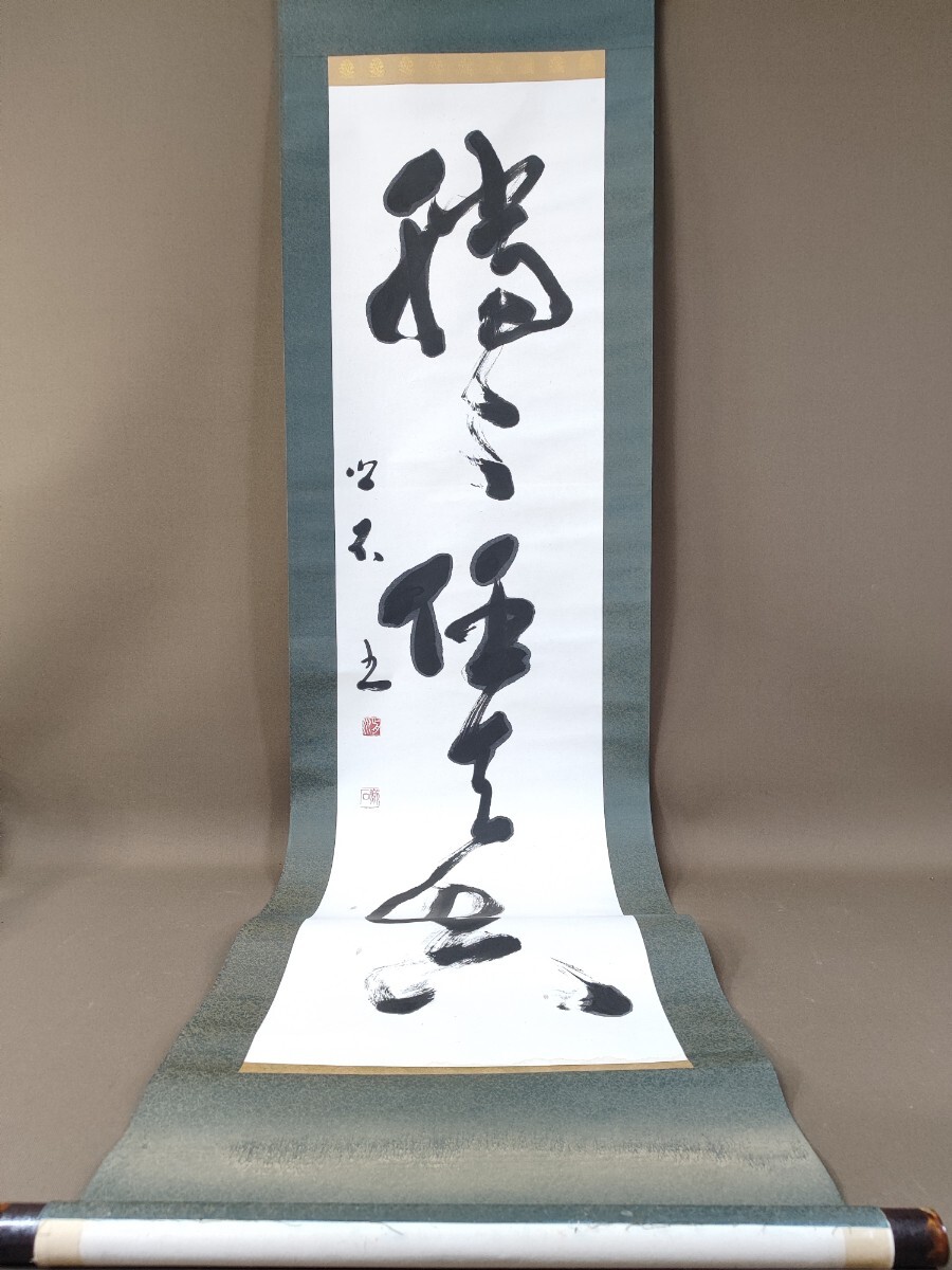 - k107 掛軸 書 一行書 紙本 落款 古美術 作者不詳 模写