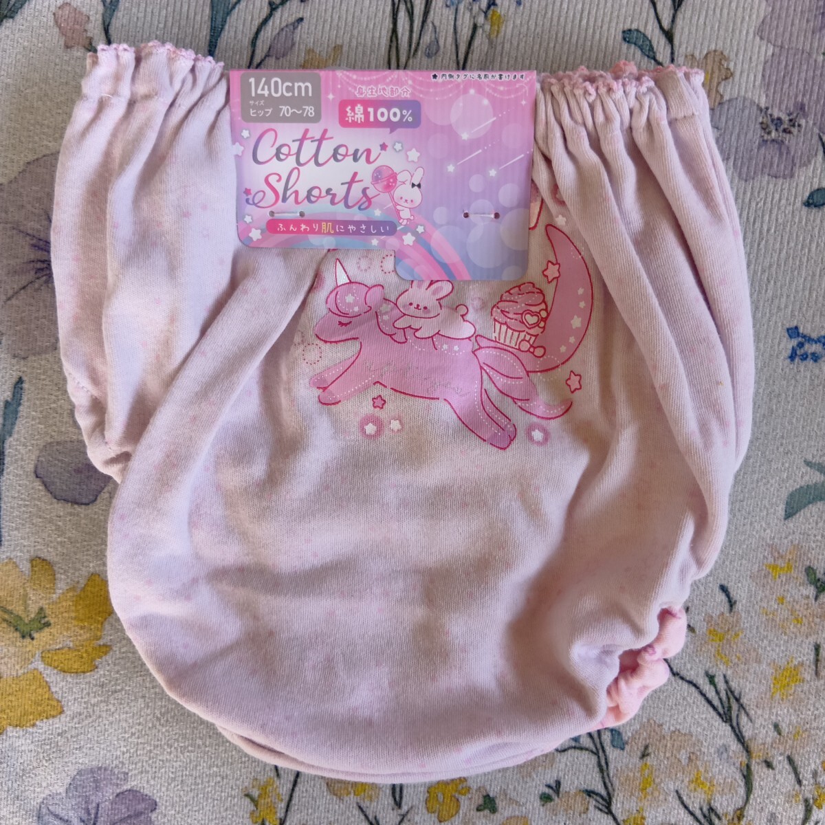 - 女児 ガールズインナー 薄紫系地?にユニコーン・うさぎ・星&ピンク地にユニコーン・雲・英字模様のショーツ 2枚組 140サイズ
