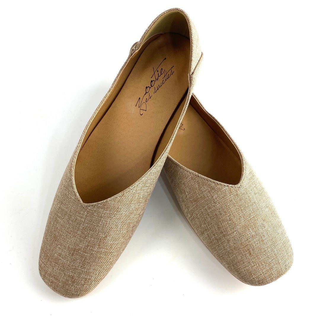 > 新品 Vカット フラットシューズ ベージュ Lサイズ 24.5cm レディース 美脚効果 かかと踏める ぺたんこ パンプス シンプル カジュアル 靴