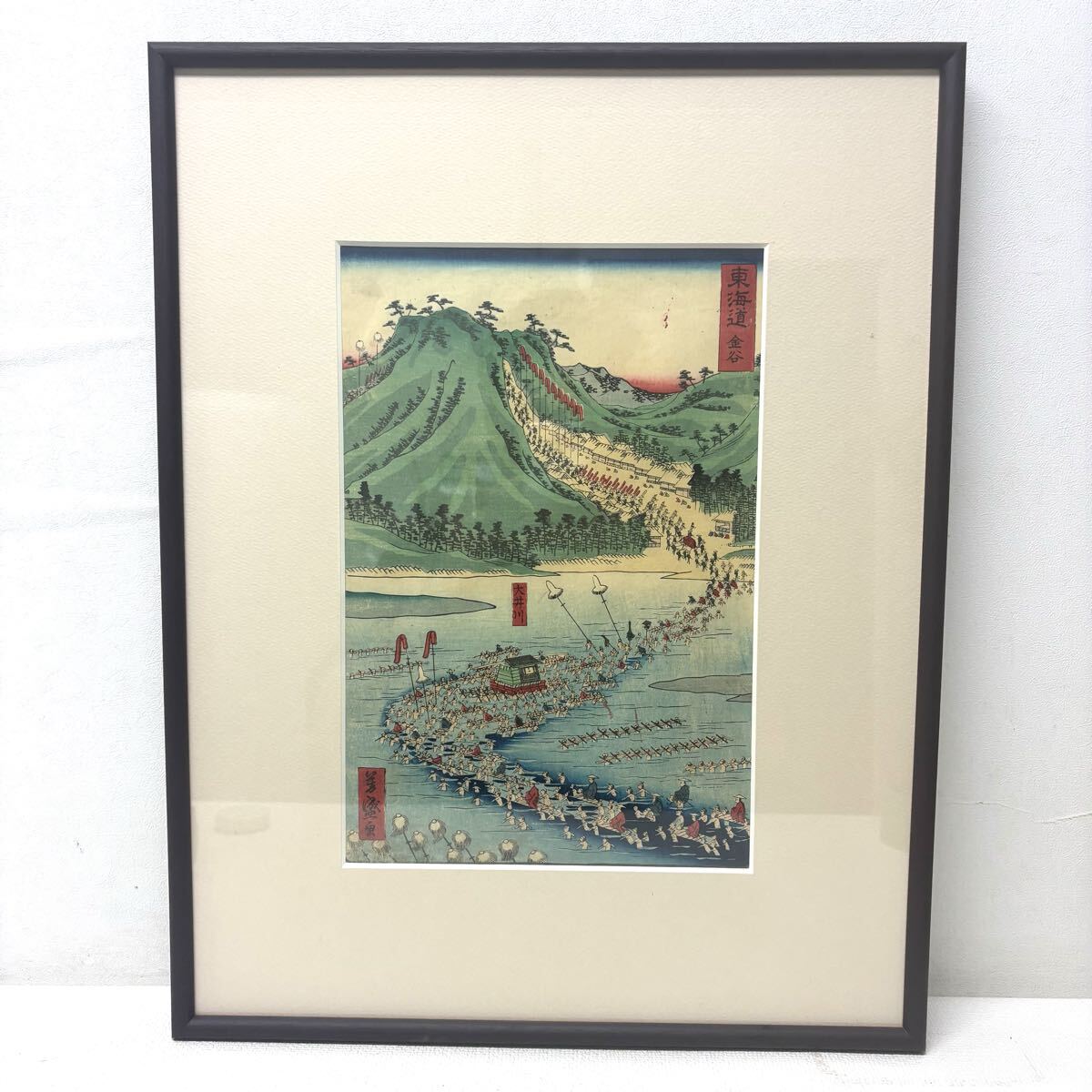 - 0920E6 真作保証★歌川芳盛 御上洛東海道 金谷 木版画 版画 浮世絵 名所絵 文久3年 大井川 行列 錦絵